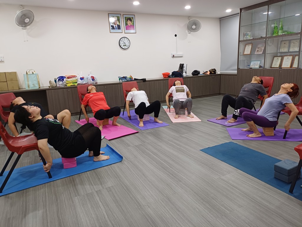 Using a chair to assist you to do poses. Chair yoga enables you to stay in the correct alignment for longer so that you can reap its benefits. This class, first started in March 2024, is having its re-run now at Kolam Ayer Geylang Bahru RN. Due to limited space, please register your interest early with the RN to avoid disappointment.